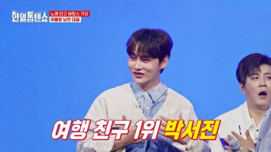 ‘부산의 아들’ 진해성과 ‘포항의 딸’ 전유진은 ‘여행 취향 대결’에 나섰다. 전유진은 ‘밸런스 게임’에서 ‘계획형 파워J’ 최수호와 ‘무계획 파워P’ 손태진 중 “제가 무계획이라서 상대방은 계획했으면 좋겠다”라고 최수호를 선택했지만, 박서진은 “그냥 최수호라서 선택한 거 아냐?”라고 되물어 현장을 포복절도하게 했다. 그리고 진해성은 여행 내내 아재 개그로 정신을 쏙 빼놓는 수다쟁이 신승태보다 침묵으로 조용히 풍경만 감상하는 강문경을 여행 파트너로 고르겠다며 “(내가 말이 많아서) 의견 충돌을 피하기 위한 선택”이라고 전해 폭소를 일으켰다. 이어 진해성은 ‘잘있거라 부산항’을, 트로트계의 마이클 잭슨다운 몸짓을 더해 선보였고, 전유진은 ‘한 여름밤의 꿈’을 힐링 요정다운 청아함으로 열창했다.
