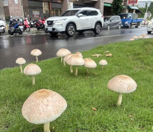 5일 대만 UDN, TVBS 등에 따르면 대만 남부 가오슝 시내에는 전날부터 흰색 버섯들이 길거리와 도로 중앙분리대 등의 녹지 곳곳에 자라났다.