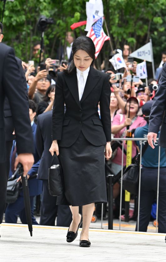 윤석열 전 대통령 부인 김건희 여사가 6일 오전 서울 종로구 민중기 특검 사무실에 피의자 신분으로 출석하고 있다. 김 여사의 소환조사는 지난 7월 2일 특검이 수사를 개시한 지 35일 만이다. 도이치모터스 주가조작 의혹과 공천개입 의혹, 건진법사 청탁 의혹 등 특검법상 김 여사에 대한 수사 대상 의혹은 총 16개에 이르며, 전·현직 대통령 부인이 수사기관에 피의자로 공개 출석하는 것은 헌정사상 처음이다. 임세준 기자