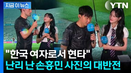 해당 게시물은 '이해하면 한국 여자로서 현타(현실에 회의감이 온다는 뜻) 온다는 사진'이라는 제목으로, 지난 3일 서울월드컵경기장에서 열린 토트넘과 뉴캐슬의 경기 후 인터뷰 장면을 캡처한 사진 두 장을 담고 있습니다.