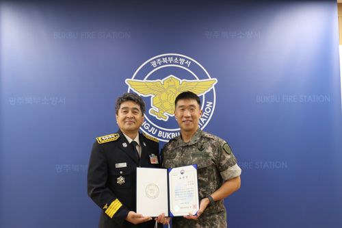 황인 북부소방서장은 "국가를 지키는 군인이 지역 주민의 안전까지 지켜주셔서 진심으로 감사드린다"며 "시민의 생명을 구한 용기 있는 행동에 깊이 경의를 표한다"고 말했다.