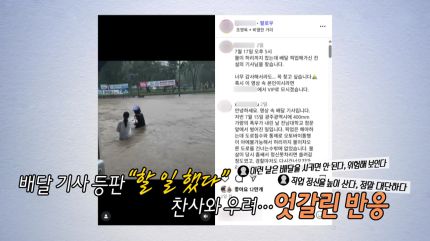 누리꾼들은 "직업 정신을 높이 산다, 정말 대단하다"는 의견부터 "이런 날은 배달을 시키면 안 된다, 위험해 보인다"는 우려 섞인 댓글까지 엇갈린 반응을 보였습니다.