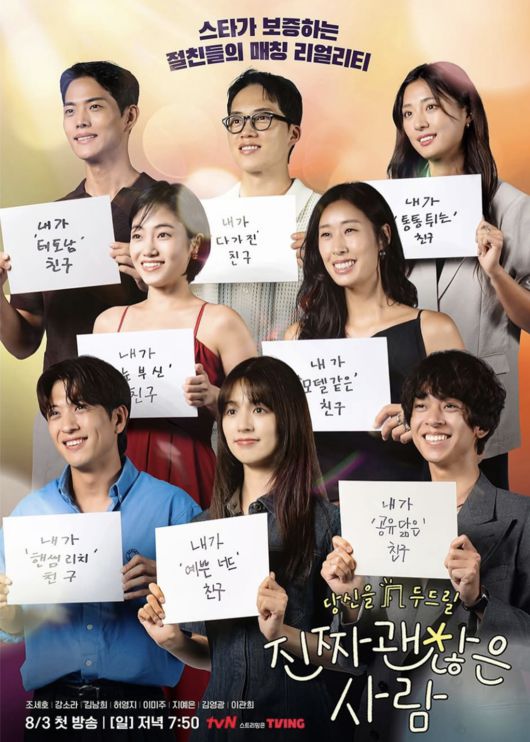 한편 ‘진짜 괜찮은 사람’은 스타들의 소개로 모인 8인의 일반인이 5박 6일간 한 공간에서 생활하며 펼치는 절친 매칭 리얼리티다. 매주 일요일 오후 7시 50분 방송.