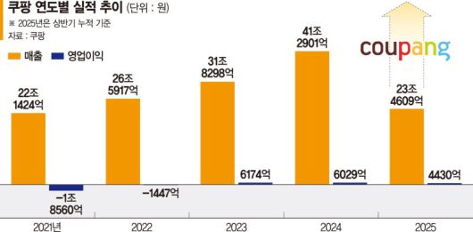 쿠팡의 성장세를 보면 올해 매출 50조원 돌파도 가능하다는 분석이 나온다. 지난해는 41조원의 매출을 거뒀다. 올해 상반기 매출만 23조4609억원을 기록했고 하반기 성장세를 이어가면 50조원 달성이 가시권에 들어올 수 있다. 연간 영업이익도 사상 첫 1조원 고지를 넘볼 것으로 보인다.
