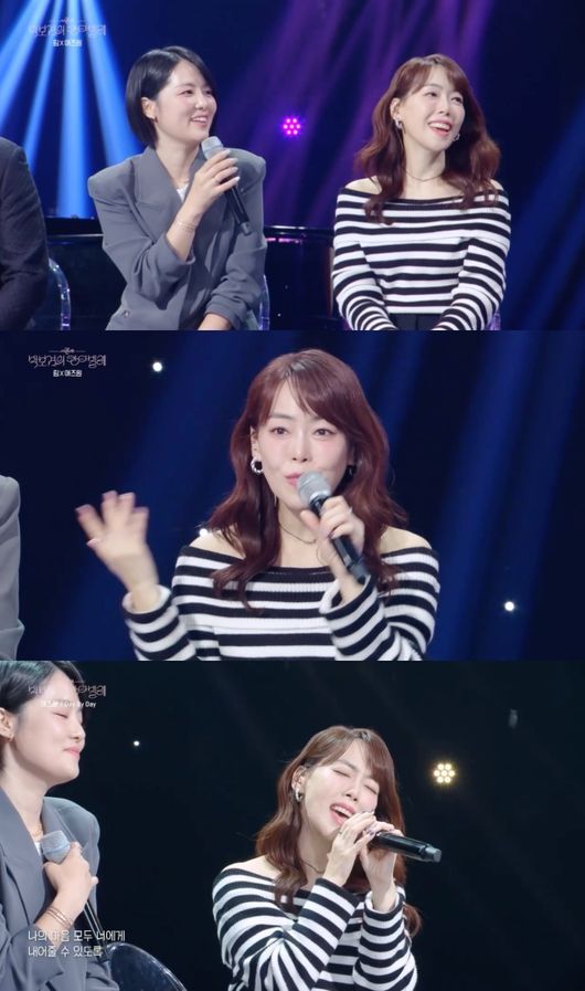 특히 해당 방송에서 이민은 MC인 박보검에 대한 팬심을 드러내 눈길을 끌었다. 이민은 박보검을 보며 “엄청 진정하고 있다”라고 말하는가 하면, 노래를 부르기 전에는 “너무 실례인 거 알지만 등 돌아서 노래해도 될까요? 뭘 못하겠다”라고 양해를 구하기도 했다. 이민과 크리스탈은 여전히 아름다운 하모니를 자랑했다.