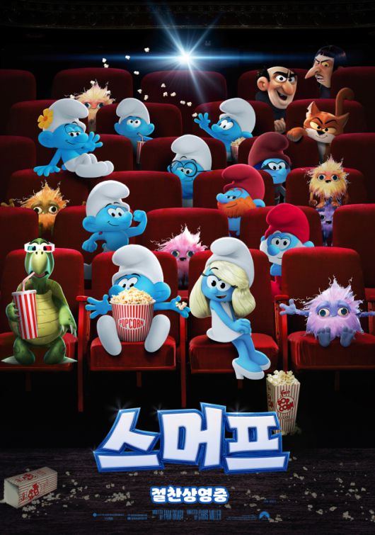우선 이번에 새롭게 공개된 포스터는 ‘스머프’의 다채로운 캐릭터들이 극장에 옹기종기 모인 귀여운 비주얼로 시선을 사로잡는다. 극의 주역인 ‘스머페트’, ‘그냥 스머프’, ‘파파 스머프’를 비롯해 ‘허영 스머프’, ‘똘똘이 스머프’, ‘덩치 스머프’ 등 인기 스머프의 모습이 반가움을 더한다. 구석에서 스머프들을 노리고 있는 빌런 ‘가가멜’과 ‘라자멜’ 형제, 반려묘 ‘아즈라엘’과 뉴페이스 ‘목시 스머프’, 형형색색의 ‘스누터푸트’들과 ‘거북이’까지 개성만점 친구들이 스크린 앞에 총출동해 ‘스머프’에 대한 기대감을 증폭한다.