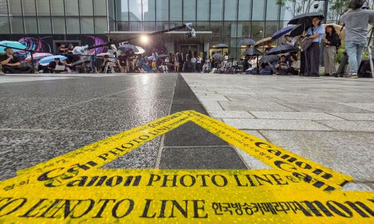 윤석열 전 대통령 부인 김건희 여사가 6일 서울 종로구에 마련된 김건희 특검팀(특별검사 민중기) 사무실에 피의자 신분으로 출석하는 가운데 특검 사무실 입구에 포토라인이 마련되어 있다. 최상수 기자 |