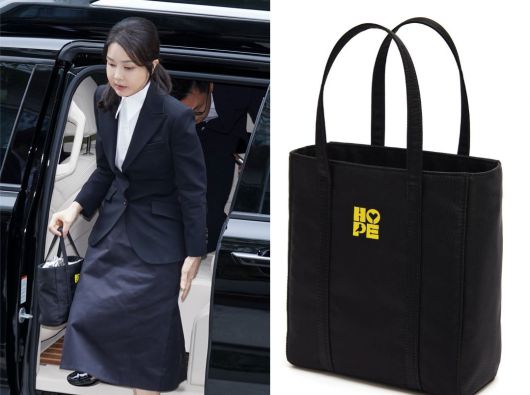 고가의 명품백 수수 의혹을 의식한 듯 김 여사는 이날 국내 소상공인 브랜드인 ‘빌리언템’의 ‘홉 토트백’을 들고 나왔다. 해당 가방은 정가 15만 원대로 온라인에서 9만 원대에 판매되고 있다. 친환경 나일론 원단으로 제작된 제품으로, 가방 상단에 ‘HOPE’(희망)라는 문구가 새겨져 있다. 특검은 김 여사가 통일교 측으로부터 샤넬백 2개를 전달 받았다는 의혹을 수사 중이다. 김 여사가 통일교 현안청탁 목적으로 받은 샤넬백은 ‘클래식 라지 플랩 백’과 ‘‘핸들 장식의 플랩백’으로 당시 가격은 각각 1271만 원과 802만 원이다. 이날 김 여사가 신은 것으로 추정되는 프랑스 명품 로저비비에 구두의 출시 당시 가격은 121만 원이다.