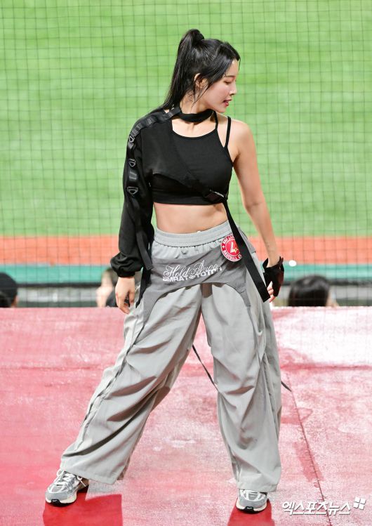 (엑스포츠뉴스 인천, 김한준 기자) 6일 오후 인천SSG랜더스필드에서 열린 '2025 신한 SOL Bank KBO리그' 삼성 라이온즈와 SSG 랜더스의 경기, SSG 이수진 치어리더가 멋진 공연을 선보이고 있다.김한준 기자 kowel@xportsnews.com