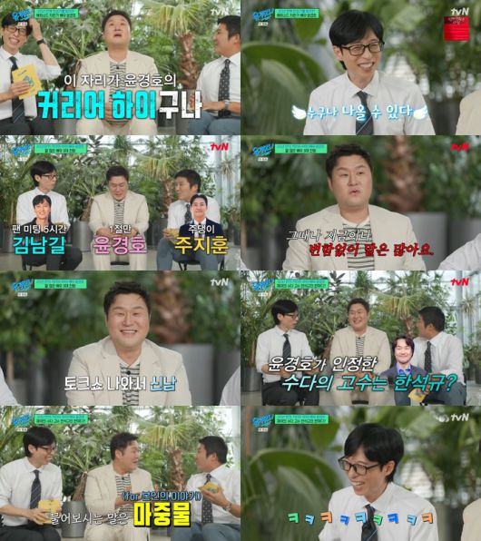 그런가 하면 윤경호는 수다 쪽 재야의 고수로 한석규를 꼽았다. 윤경호는 “한석규는 말하는 걸 굉장히 좋아한다. 본인이 말 많은 걸 미안해하면서도 또 한다”고 웃었다.