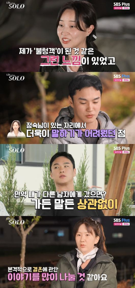 데이트를 마치고 정숙은 “굉장히 불편했다. 제가 불청객이 된 것 같은 그런 느낌이 있었고 상철님이 어떤 마음이 든지 말든지 나는 내가 하고 싶은 대로 할 거다 했는데 두 분이 확실하고 확고한 거 보니까 저도 안 좋고 상철님도 안 좋고 옥순님도 안 좋다”라고 밝혔다.