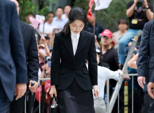 윤석열 전 대통령의 배우자 김건희 여사가 6일 서울 종로구 광화문 민중기 특별검사팀 사무실에 피의자 조사를 받기 위해 출석하고 있다. 뉴시스 |