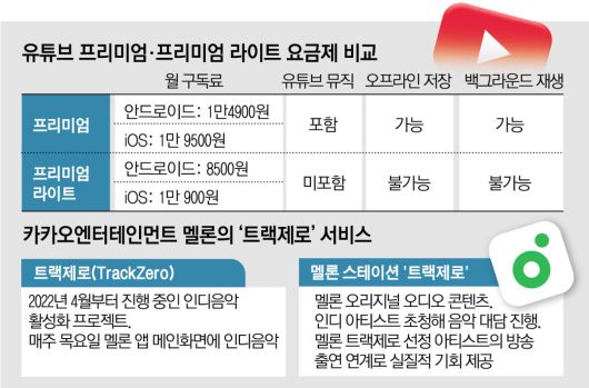 안드로이드 애플리케이션(앱) 시장에서 프리미엄은 월 1만 4900원, 프리미엄 라이트는 8500원으로 6400원이 차이 난다. 그러나 이는 국내 음원 플랫폼의 무제한 스트리밍 요금 수준(월 7500~7900원)보다 저렴해 안드로이드 이용자가 국내 음원 플랫폼을 이용할 경우 오히려 더 많은 비용을 부담하게 되는 구조다. 뿐만 아니라 라이트 요금제에는 백그라운드 재생과 오프라인 저장 등 핵심 기능이 제외됐기 때문에 소비자들이 라이트와 국내 플랫폼 조합을 선택할 동기는 더욱 떨어진다는 지적이다.