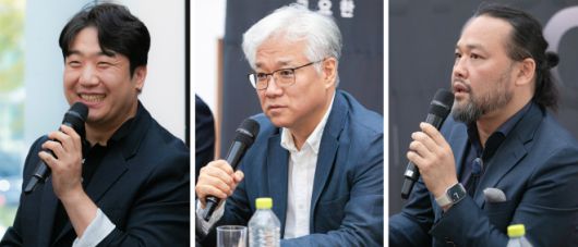 베이스 연광철(가운데), 베이스바리톤 사무엘 윤(오른쪽), 바리톤 김기훈(왼쪽)이 5일 서울 종로구 한미뮤지엄 삼청에서 열린 기자간담회에서 ‘싱 로우 앤 소프트’ 공연에 대해 설명하고 있다. 아트앤아티스트 제공 |