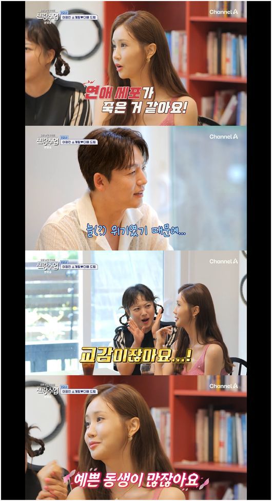 이어 이다해는 “한마디로 연애 세포가 죽은 것 같다. 너무 직설적으로 말했다”라면서 “내가 ‘신랑수업’ 교감이고, 또 예쁜 동생들이 많다”라고 말했다. 이에 이정진은 도리어 갑작스럽게 새로운 사람을 만날 것이 예감되어 어지러운 표정을 지었다. 심진화는 “별명이 ‘광진구 고소영’이다”라며 흥을 거들었다.