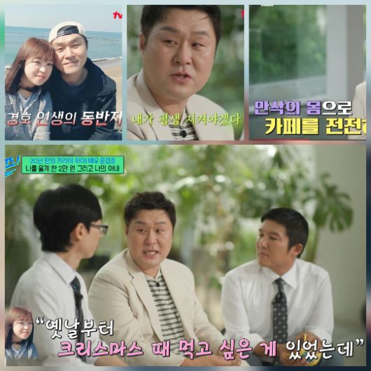 이날 그는 9년 연애에 12년 결혼 생활까지 합쳐 총 21년을 함께한 아내 김해정과의 가난했던 연애 시절을 떠올리며 눈시울을 붉혔다.