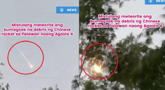필리핀 팔라완 하늘에서 불덩어리가 추락하는 모습이 포착됐다. 필리핀 정부는 이 불덩어리의 정체가 중국이 발사한 인공위성 탑재 로켓 파편이라고 밝혔다.