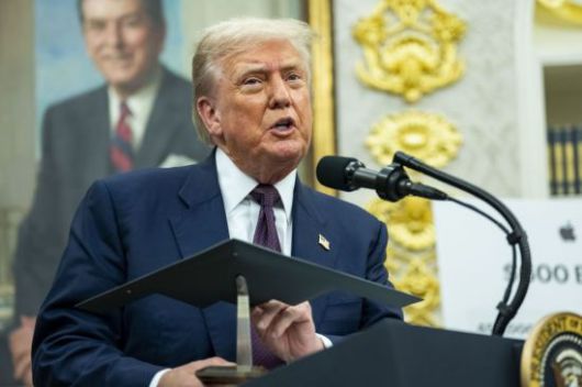 트럼프 대통령은 이날 백악관에서 열린 애플의 대미 시설투자 계획 발표 행사에서 "(미국이 아닌 곳에서 생산되는) 모든 집적회로(chips)와 반도체(semiconductors)에 대략 100%의 품목별 관세를 부과할 것"이라고 말했다. 그러면서 "다만 미국에서 생산하기로 약속했다면 아무런 관세도 부과되지 않을 것"이라며 "이건 아주 큰 발표(big statement)"라고 강조했다.