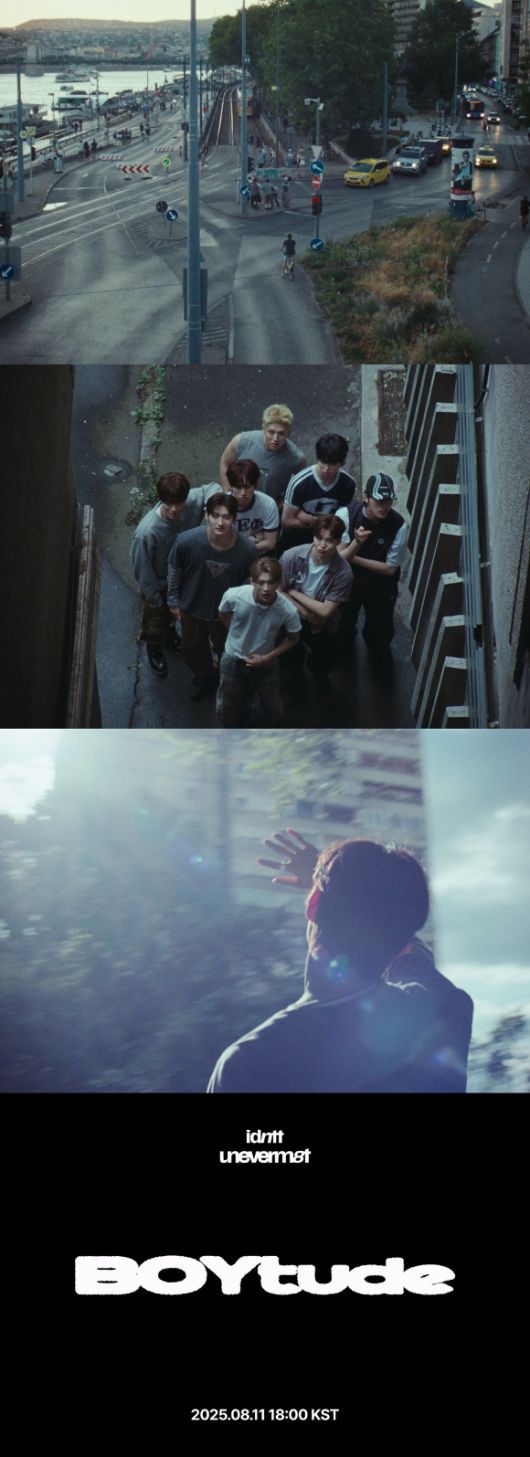 새롭게 베일을 벗은 'BOYtude' 뮤직비디오 속에는 이국적인 풍경과 함께 자유분방한 매력을 머금은 아이덴티티(idntt) unevermet 멤버들의 모습이 담겨 눈길을 끌었다. 특히 특별한 청춘의 순간들이 감각적으로 어우러지며 데뷔를 기다리는 글로벌 팬들에게 두근거림을 안겼다.