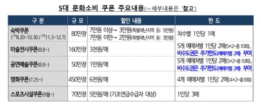 정부는 민생회복 소비쿠폰을 통한 소비 회복 모멘텀이 전국으로 빠르게 확산되도록 범부처 협업을 추진한다. 우선, 제2차 추가경정예산으로 지급된 문화소비쿠폰의 지방 집중 사용을 유도한다. 현재 전시·공연 할인쿠폰은 예매처별로 1인당 2매씩 총 10매까지 지급되는데, 같은 방식으로 비수도권에 한해 추가로 최대 10매를 제공할 계획이다.