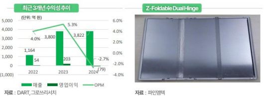 한용희 그로쓰리서치 연구원은 "단기적인 성장 동력은 올해 하반기 삼성전자의 7세대 폴더블폰 출시이며, 장기적으로는 내년 북미 업체의 폴더블 시장 진출이 주요 모멘텀이 될 것"이라고 진단했다.