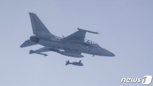 FA-50 전투기가 KGGB 공대지폭탄을 투하하고 있다. (공군 제공) 2024.3.7/뉴스1 <자료사진> |