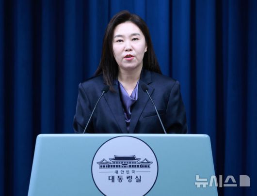[서울=뉴시스] 고범준 기자 = 강유정 대변인이 7일 서울 용산 대통령실 청사에서 또럼 베트남 당 서기장 방한 관련 브리핑을 하고 있다. 2025.08.07. bjko@newsis.com