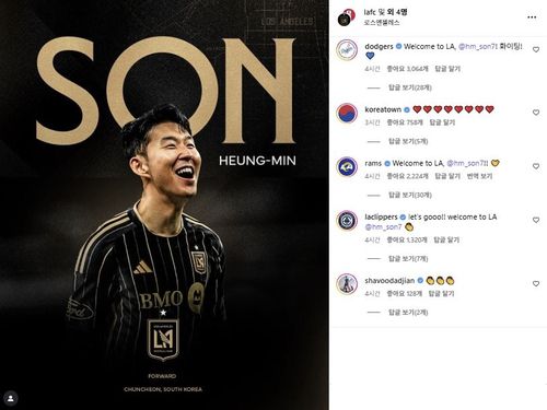 LA 다저스, 램스, 클리퍼스 등의 댓글이 달린 손흥민 LAFC 입단 발표 게시물 |