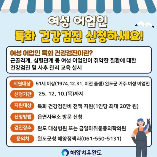 완도 여성 어업인 특화 건강검진비 지원 안내문. 완도군 제공 |