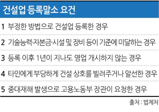 이 대통령이 언급한 건설면허 취소는 사실상 건설산업기본법(건산법) 제83조에 근거한 가장 엄중한 처분인 ‘등록 말소’를 의미한다. 이에 따르면 ‘고의나 과실로 건설 공사를 부실하게 시공해 시설물의 구조상 주요 부분에 중대한 손괴를 일으켜 공중의 위험을 발생하게 한 경우’ 면허 취소 처분이 가능하도록 규정한다.