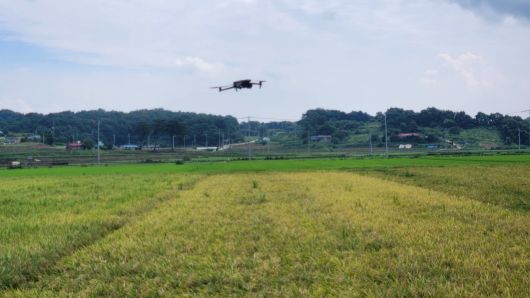 벼가 익어가는 황금 들녘, 수백년동안 참새로부터 곡식을 지키는 역할을 했던 허수아비 대신 가 드론에게 그 자리를 대신 드론이 등장했다.