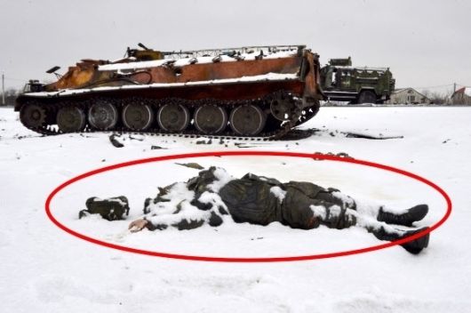 우크라이나 동북부 하르키우 외곽 도로에 26일(현지시간) 파괴된 러시아군 차량들이 멈춰서 있는 가운데 한 러시아 병사의 시신이 널부러져 있다. 2022.2.27 AFP 연합뉴스 |