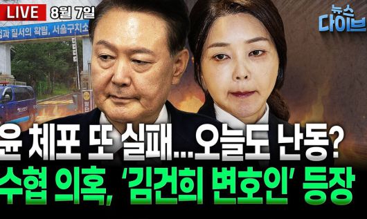 출연: 노영희 변호사, 장윤미 변호사, 박진영 정치비평가, 황준범 한겨레 논설위원, 진행: 고현준. [속보] 특검, 김건희 구속영장 청구...주가조작·알선수재 혐의 /‘윤석열 체포’ 또 실패...‘완강한 거부’ / 특검 출석했던 김건희, ‘빼박’ 증거에 황당 해명 / 윤석열-김건희 부부 동시 구속 가능성은? / 수협, 도이치에 수상한 대출...그 뒤에 ‘김건희 변호인’? / 국힘 전당대회 컷오프...주진우 탈락! 오늘 (8월 7일) 뉴스 다이브 많은 시청바랍니다. 제작: 뉴스영상부