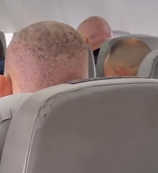 튀르키예에서 모발 이식을 마친 남성들이 귀국하는 항공편에서 찍힌 영상./소셜미디어(SNS)