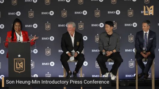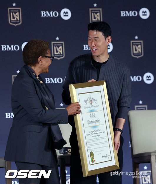손흥민은 이날 BMO 스타디움에서 입단 기자회견도 진행했다. 그의 LA 입성을 기념하기 위해 수많은 현지 팬들은 물론이고 캐런 배스 LA 시장, 김영완 LA 한국 총영사 등이 현장을 방문해 손흥민을 환영했다. 배스 시장은 "역사적인 날이다. LA 전체가 신난 날이다. 쏘니를 이제 공식적으로 엔젤리노(LA 시민)로 선언한다"라며 그에게 시민증을 전달하기도 했다.