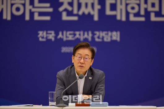 이재명 대통령이 1일 서울 용산 대통령실 청사에서 열린 전국 시·도지사 간담회에서 발언을 하고 있다.(사진=뉴스1) |