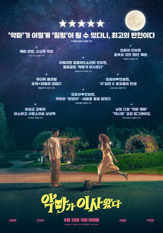 공개된 리뷰 포스터는 길구(안보현)가 새벽마다 악마로 깨어나는 선지(임윤아)의 저주를 풀고자 악마의 실제 이름을 부르기 직전의 결정적인 순간을 담아 눈길을 사로잡는다. 여기에 "'악마 '가 이렇게 '힐링'이 될 수 있다니, 최고의 반전이다", "임윤아·안보현 중독성 강한 맵단 케미", "이상근 감독의 따스하고 사랑스러운 상상력", "러블리한 임윤아X소년미 안보현, 동화같은 '악마가 이사왔다'", "무더위를 물리칠 오싹+러블리 코미디" 등 '악마가 이사왔다'의 주역들의 완벽한 호흡과 더불어 '엑시트' 이상근 감독의 신선한 연출, 감동과 진정성까지 챙긴 작품을 향한 호평을 확인할 수 있다. '악마가 이사왔다'는 이러한 언론 호평에 힘입어 한국 영화 예매율 TOP2에 등극, '좀비딸'에 이어 올여름 한국 영화 흥행 배턴을 이어받을 예정이다.