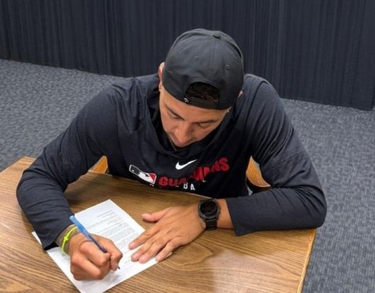 프로야구 롯데 자이언츠가 올 시즌 10승을 거둔 외국인 투수 터커 데이비슨을 방출하고 새 외국인 투수 빈스 벨라스케즈를 영입했다고 7일 밝혔다. 사진은 계약서에 사인하는 롯데 새 외인 투수 빈스 벨라스케즈. 롯데 자이언츠 |
