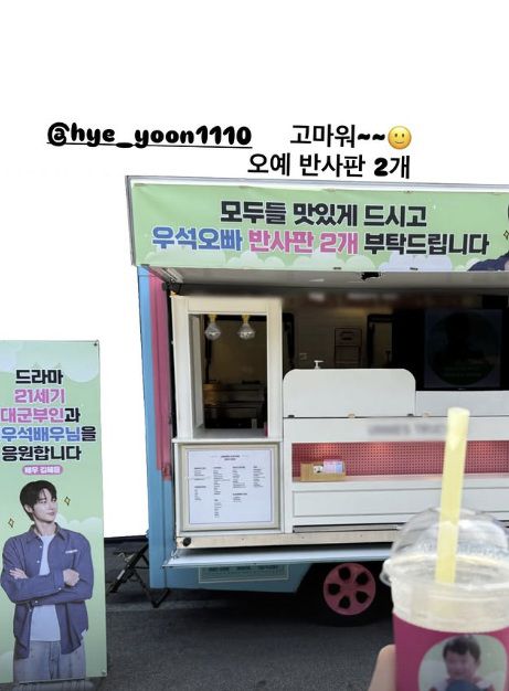 변우석은 7일 자신의 SNS에 김혜윤이 드라마 '21세기 대군 부인' 촬영 현장에 보내준 커피차 사진을 공개했다.