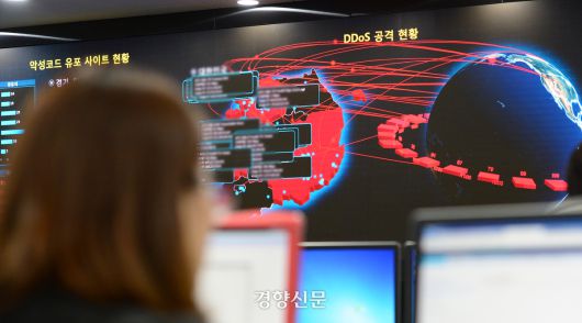 2017년 5월 한국인터넷진흥원 인터넷침해대응센터 종합상황실에서 감시요원들이 국제적인 랜섬웨어 공격에 대비해 전산망을 감시하고 있다. 경향신문 자료사진 |