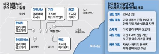 미국 남동부 지역에는 150여 개의 한국 기업이 있다. 현대차그룹이 2005년 앨라배마 공장을 건설할 때 함께 진출한 기업들을 1세대, 기아가 2009년 조지아주 지역에 생산공장을 건설할 때 진출한 곳들을 2세대로 분류한다. 최근 전기차와 배터리 공장 건축으로 3세대 기업들도 미국으로 진출하고 있다.