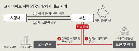 외국인 A씨는 소득원이 없는데도 국내에서 수십억원에 달하는 아파트를 샀다. 국세청 조사 결과 그는 한국에 거주 중인 아버지에게 승계받은 분양전환권을 통해 아파트를 취득한 것으로 확인됐다. 그는 이 과정에서 아버지가 납부한 임차보증금을 부담하지 않았는데도, 증여세를 신고하지 않았다.