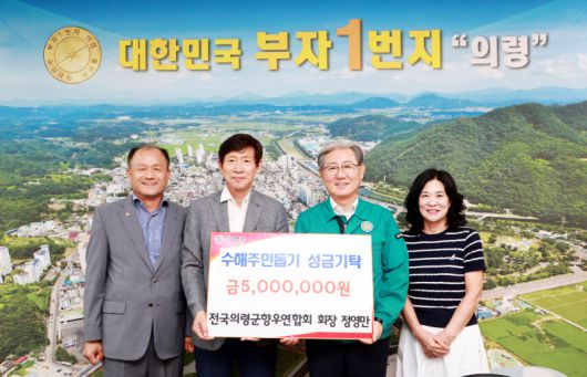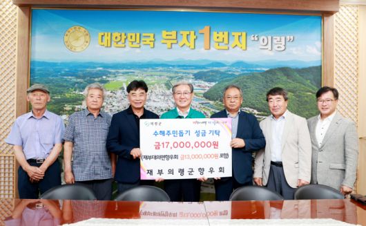 재부의령군향우회(회장 정귀영)에서 6일 수해복구와 피해주민 지원을 위해 성금 1700만원을 의령군에 기탁했다. 이번 기탁금에는 재부대의면향우회가 마련한 1300만원이 포함됐다.