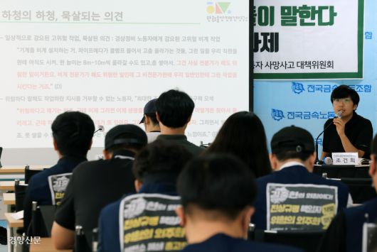 국현웅 민주노총 공공운수노조 한전KPS비정규직지회 조합원은 7일 서울 중구 금속노조 회의실에서 열린 토론회에 참석해 발전소 2차 하청노동자들이 일상적으로 겪는 위험에 관해 이렇게 증언했다. 국씨는 한국서부발전 태안화력발전소에서 홀로 선반 가공 작업을 하다 숨진 하청노동자 김충현씨의 동료다.