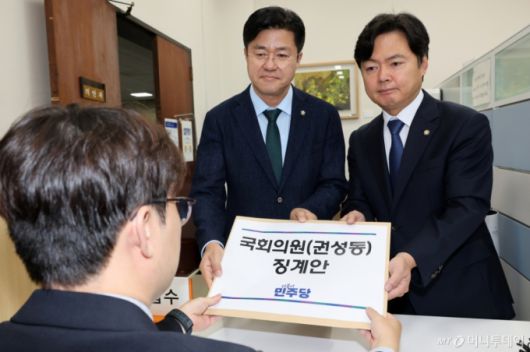 박 수석은 "오늘 권 의원에 대한 징계안을 제출한 배경에는 (권 의원이) 통일교 교주로부터 거액의 자금을 수수했단 보도가 있었고 이는 국회법이 정한 징계사유에 명백히 해당한다고 판단했기 때문"이라며 "이번 징계안 제출을 통해 더 이상 우리 민주주의가 또 정당 민주주의가 훼손되는 것을 막고 국민들로부터 국회가 신뢰받을 수 있기 때문"이라고 설명했다.