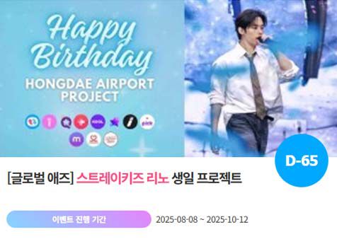 아이돌 주간 랭킹사이트 '팬앤스타'에서 8일부터 스트레이키즈 멤버 리노 생일 축하를 위해 깜짝 서포트 이벤트를 진행하고 있다. 그의 생일을 축하하는 광고가 여러 장소에 게시되는 글로벌 팬심 프로젝트다.