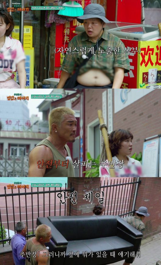 한편, 충칭 현지화가 완료된 곽준빈의 모습이 웃음을 자아낼 예정이다. 더위를 식히려고 충칭의 아저씨들처럼 자연스럽게 상의를 올려 파격적인 복부 노출을 감행해 멤버들의 이목을 집중시킨다.