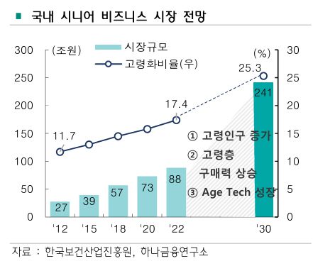 하나금융연구소는 지난달 21일 발표한 보고서를 통해 국내 시니어 산업 시장 규모는 2020년 73조원에서 2030년 241조원까지 성장할 것으로 추산했다.