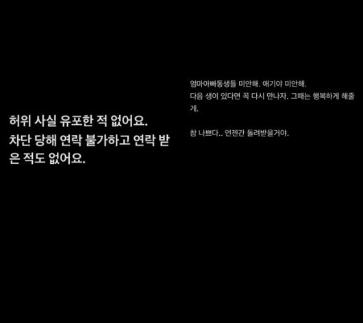 이어 "엄마, 아빠, 동생들 미안해. 애기야 미안해. 다음 생이 있다면 꼭 다시 만나자. 그 때는 행복하게 해줄게"라며 "참 나쁘다.. 언젠간 돌려받을 거야"라면서 "거짓말쟁이"라는 글과 함께 A씨 측의 입장이 담긴 기사 링크를 남기기도 했다.