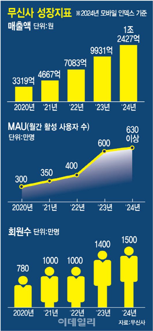무신사의 지난해 연결 기준 실적은 매출액 1조2427억원, 영업이익 1028억원, 당기순이익 689억원을 기록했다. 전년 대비 매출은 25.1% 증가했으며, 적자에서 흑자로 전환했다. 지난 1분기 매출은 전년 동기 대비 12.6% 증가한 2929억원, 영업이익은 24% 늘어난 176억원, 당기순이익은 157억 원을 기록했다. 1분기 실적을 단순 연환산할 경우, 매출은 약 1조1716억 원, 영업이익 704억 원, 당기순이익 628억 원 수준이다.